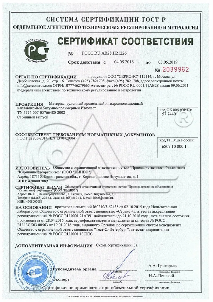 Материал "Изоэласт Оптимум" рекомендован для всех климатических зон РФ.