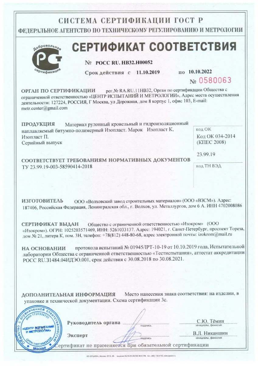 Изопласт ТУ 5774-005-05766480-2002 ТУ 23.99.19-003-58590414-2018 |