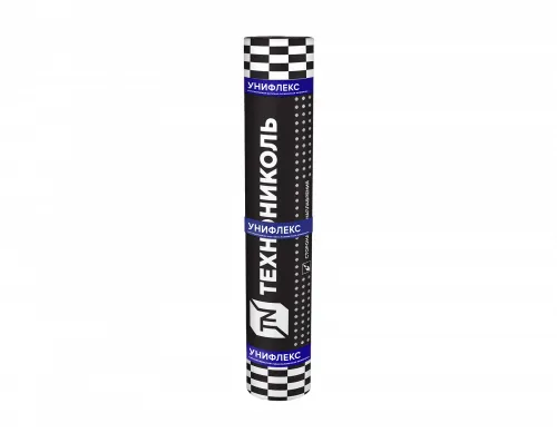 Унифлекс П — с полимерной пленкой с обеих сторон полотна; применяется для устройства нижних слоев в многослойной гидроизоляции строительных конструкций.
