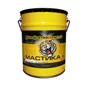 Однокомпонентная мастика, готовая к применению. Состоит из нефтяного строительного битума, резиновой крошки, минерального наполнителя, органических растворителей, пластификатора и технологических добавок.