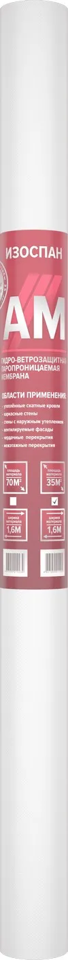 Изоспан AМ — материал, выполненный из полимерной микропористой мембраны, усиленной с двух сторон полипропиленовым нетканым полотном.