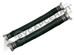 Рукав изготовлен из резины с текстильным каркасом. Внутри находится металлическая спираль для жесткости и прочности при эксплуатации в различных условиях. На концах рукава предусмотрены мягкие манжеты для присоединения арматуры.