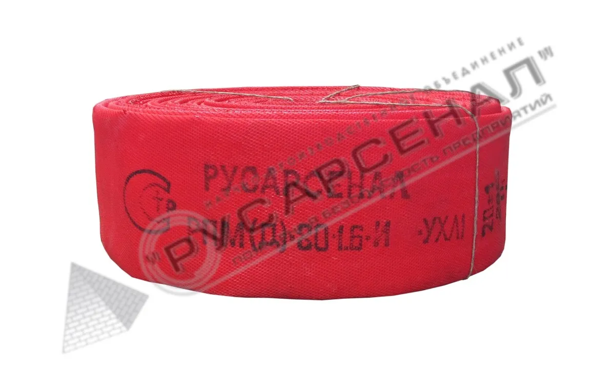 Пожарный латексированный рукав РПМ(Д)-80-1,6-И-УХЛ1 с условным диаметром прохода 80 мм. Внутреннее покрытие — натуральный латекс REVULTEX LR.